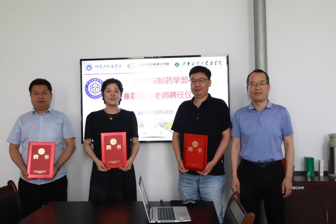 經(jīng)公司推薦,齊魯工業(yè)大學(xué)(山東省科學(xué)院)化學(xué)與制藥學(xué)部考察,我單位蔣姝慧、唐桂文、劉強(qiáng)、劉玉成、孫永軍于2024年5月被聘為齊魯工業(yè)大學(xué)(山東省科學(xué)院)化學(xué)與制藥學(xué)部兼職指導(dǎo)老師,聘期三年,齊魯工業(yè)大學(xué)(山東省科學(xué)院)化學(xué)與制藥學(xué)部書記尚明、副主任姜海輝、董成穩(wěn)、王金桂、我公司人力資源部和研發(fā)中心出席了聘任儀式。