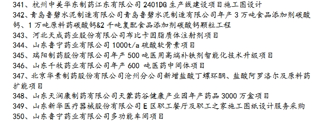 醫(yī)藥行業(yè)主要咨詢、規(guī)劃與設(shè)計業(yè)績